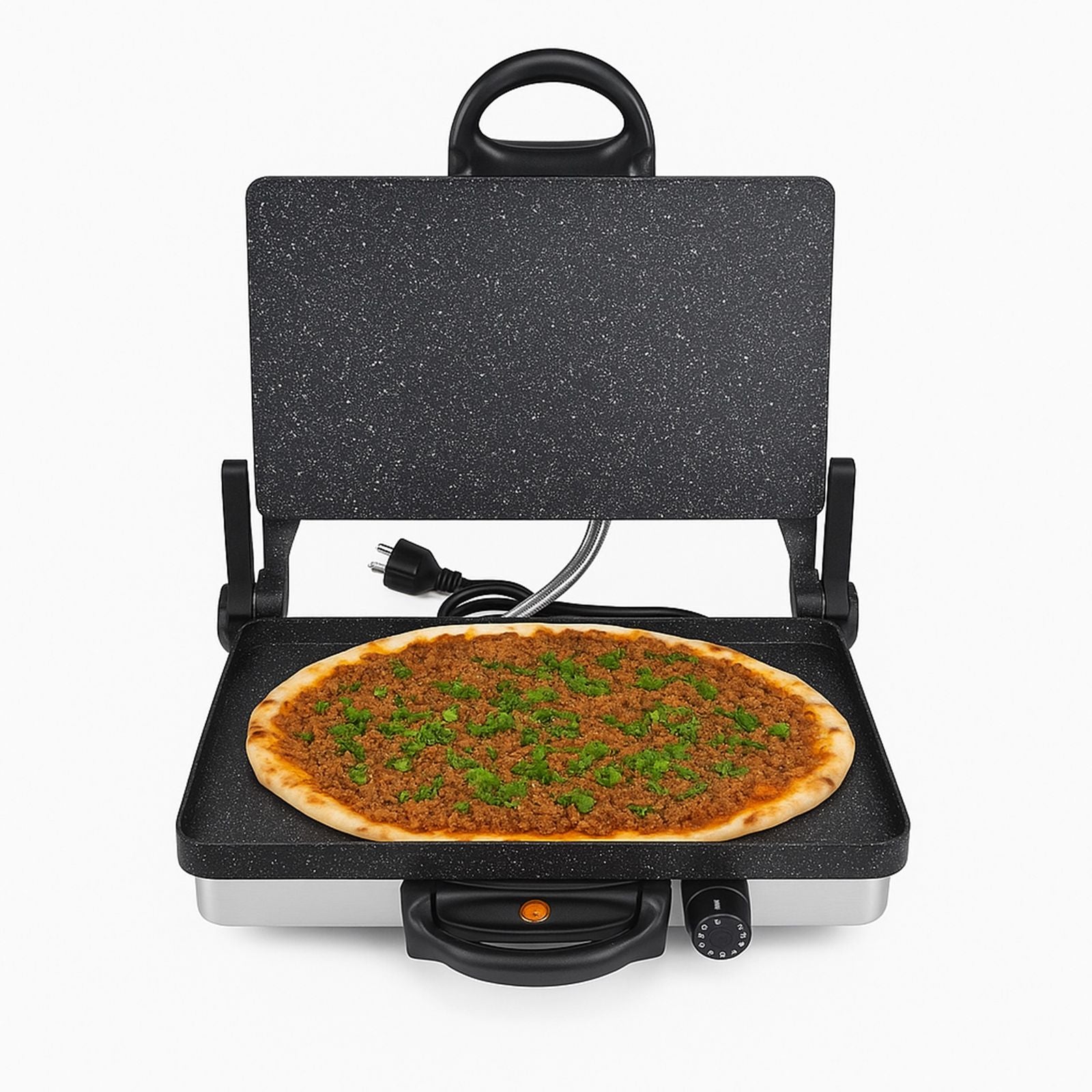 Sie die Vielseitigkeit unseres Multigrills, ein hochwertiges und leistungsstarkes Küchengerät, das eine breite Palette von Zubereitungsmethoden unterstützt. Dieser Multigrill ist nicht nur ein Kontaktgrill, sondern auch ein Toaster und eine ideale Maschine für Lahmacun und andere Teiggerichte.