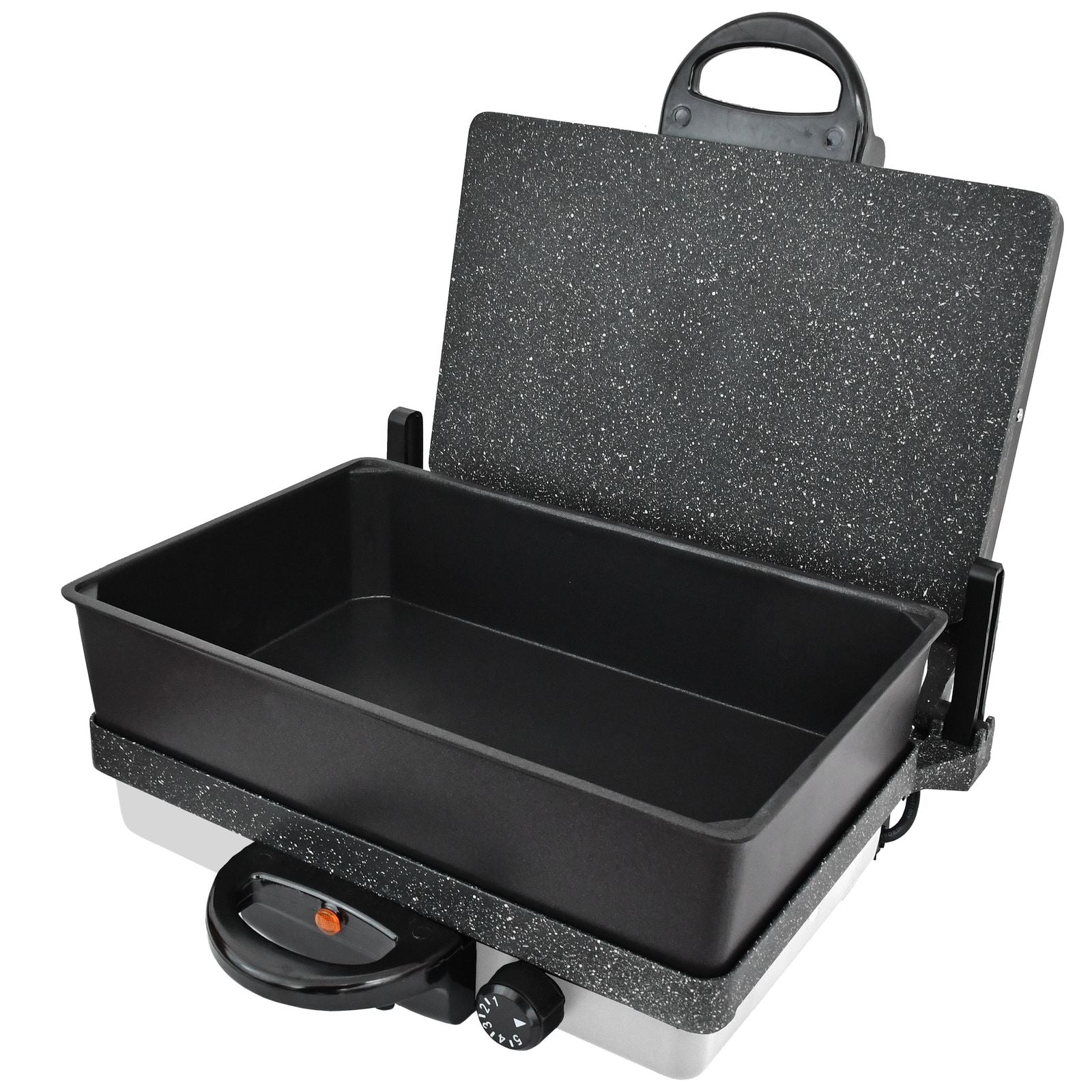 Die Antihaftbeschichtung von Grillplatten und Kasserolle sorgt für eine gesunde, fettarme Zubereitung und erleichtert die Reinigung erheblich. Die großzügige Grillfläche von 34,8 x 22,8 cm bietet reichlich Platz für vielfältige Gerichte. Dank der stufenlosen Temperaturregelung haben Sie stets volle Kontrolle, um perfekte Ergebnisse zu erzielen.